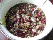 绿豆、红豆加水浸泡一晚,花生仁去皮和胚芽,与浸泡好的豆子一起放入电压力锅,按煮米饭的比例加水,用米饭的功能煮熟。</li> <li>3