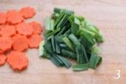 胡萝卜切圆片后用饼干切压成小花状。</li> <li>3