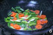 将肉盛起,将扒肉的油倒入炒锅内,大火烧辣后下入胡萝卜、青蒜爆炒至出香。</li> </ul> <ul><li>7