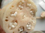 把泡好的糯米填进藕的孔里。</li> <li>6