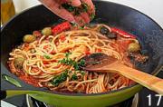 1.煮面时要按包装上的说明。 2.材料在大型超市或进口食品超市都可以买到。 番茄酱汁的做法: 加热蒜香橄榄油,再加入洋葱碎炒软,加入过筛后的水煮番茄,加盐后熬至浓稠。 蒜香橄榄油的做法: 20克大蒜切碎后放入1/2杯橄榄油里即成。冷藏后可保存2-3周。