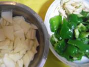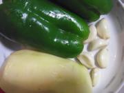 土豆去皮切片,放清水中冲洗几遍,青椒掰开,大蒜切片。</li> <li>3