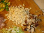 <br/>香菇用温水泡发,切小丁,笋(或马蹄)切碎。</li><li>2