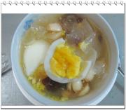 对了,忘了说要在差不多煲好的时候要放入适量的冰糖。这个汤对女性是很好的,红枣补血,雪耳滋润养颜,莲子补脾、益肺、养心、益肾,鸡蛋就是补充蛋白质啦!呵呵!</li> <li>5