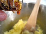 4,再将混合物倒回锅内,小火烧,直到混合物微开(一定要不停搅拌,不然就糊底了)。