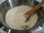 2,在另一个容器里倒入30克面粉,一个鸡蛋,一个蛋黄,搅拌均匀。