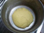 5,面团和好,用保鲜膜包好,放在冰箱保存。因为法式面皮的黄油成分很高。一般都需要在制作前放在冰箱里冷藏1到2小时。这样油和面会更好的融合,口感会更香酥!</li> <li>6