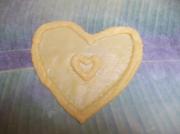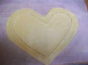 1,把面饼擀开,用刀切成心形,取边如图。</li> <li>8