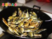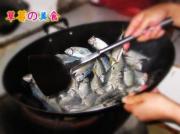 锅内的鱼用铲子码好,让它们整齐的贴在锅上,要小火(因为不是平底锅,所以要左右移动锅,以致受热均匀)</li> <li>9