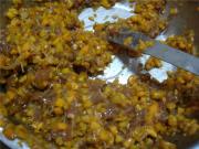 面粉和热水的比例3:1,揉匀,饧约20分钟。南瓜去皮去籽,切碎,剁得越碎口感越好;猪肉剁成肉末,将辅料a加入肉末,拌匀后与南瓜末混合,调匀。</li> <li>2
