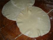 将饧好的面团分割,搓成长条,分成均匀的小剂子,擀成带有皱褶边的面皮。(该过程忘记拍照了~)</li> <li>3
