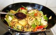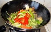 放入西芹、青红椒。</li> <li>9