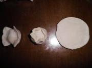 取一个剂子,两边捏紧往上,压扁、用擀面杖擀成圆形(中间厚外薄)。</li> </ul> <ul><li>13