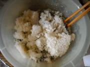 沥干的糯米倒入豆腐中,一起拌匀</li> </ul> <ul><li>7