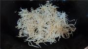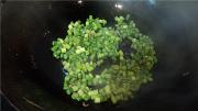 继续使用油锅把蒜苔粒倒入大火翻炒片刻,放少许盐。</li> <li>6
