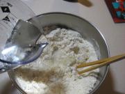<br/>水加入面粉里,如果用开水就要用筷子把面粉搅拌一下,然后再用手揉。