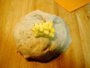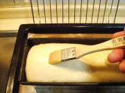 2、馅料涂抹好后,要卷的稍紧一些为好,然后再放入模具,红豆沙如太硬,可适量加少许清水使之稍软一些,这样便于涂抹,切不可往里加油脂类原料。