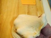 1、用后油法揉面,揉至完全阶段即可,面团儿要柔软一些为好,筋力要揉至充分,建议,用揉搓和摔打相结合的手法较快些。