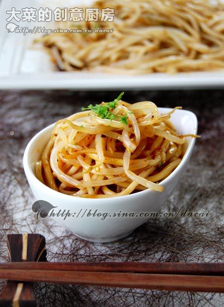 1,将豆芽洗净,入滚水中汆烫10秒钟