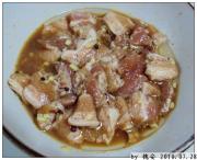 用2中的材料(最后我没放这么多,分量可以自己掌握)、料酒和少许油将五花肉腌制。</li> </ul> <ul> <li>4