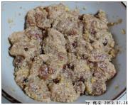 将腌制好的五花肉均匀的拌上蒸肉米粉,保证每一块都沾上。</li> </ul> <ul> <li>7
