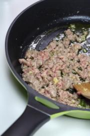 热锅热油爆香蒜末,下猪肉馅翻炒至变色。</li> </ul> <ul><li>10