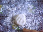 在桌子上洒上薄薄的一层面粉。</li> <li>6