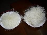 热锅里倒入油,要多一些。油烧热放入一束粉丝,下去就完全炸开了。要立刻捞起。</li> <li>3
