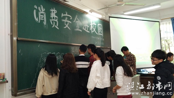 阅读(4279) 回复(0) 查看全文>> - [2017-03-20]岭南师范学院之消费安全活动你了解到了自己的消费权益因什么而受到侵害了呢?但是,生活中不仅仅会存在商品质量不及格,还会存在商家通过各种花招让消费者在消费过程中无形中让你的消费者权益受到侵害。 3月19日,旨在让岭师学子能够更好地维护自己的消费者权益同时又要履行到自己的监督权,这天我们岭南师范学院15金融志愿者举办了消费安全进校园的宣传活动。首先,最吸引人的环节是观看维权知识和方法普及视频,饭店未告知客人纸巾是要另费,商场特价商品恕不退还。。。。。。这些平时看起来很小甚至大家都觉得并未危害到自己的消费者权益的行为,却刚刚好就是侵犯了我们的消费者权益。通过看视频,大家在欢声笑语中了解到了自己在生活中其实很多权利都受到了损害。 然后,我们班的代表玉梅同学在讲台上进行更详细的宣讲。 接着,我们一起在黑板上签下自己的名字,以表示日后我们要通过合法途径尽可能的维护自己的消费者权益。 至此,本次活动取得圆满的成功。
