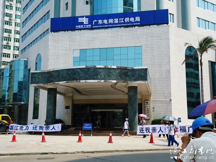 - [2012-09-28]湛江电力公司门口惊现“还我亲人”标语 有图求真相?今日路过湛江电力公司门口,只见四人拉出“湛江电力,还我亲人”、“还我亲人,幸福广东”的标语,围观者众,不敢独享,发上网上来求真相,有指导真相的群众八一八呀!