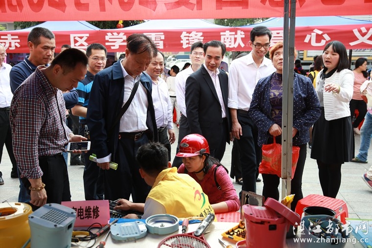 阅读(8287) 回复(1) 查看全文>> - [2018-03-06]勇者@融和助力赤坎区学雷锋志愿服务活动摄影:黄海 (湛江日报记者林石湛 通讯员杨子江 揭翘羽)4日,由赤坎区创文办、团赤坎区委等单位联合举办的2018年学雷锋志愿服务月启动仪式暨“3·5”统一活动日活动在赤坎某广场举行。数百名志愿者以及众多市民参加了活动。 此次活动设立了游园拓展区、节目表演区和志愿项目展示区。活动现场开展了法律法规咨询、医疗卫生、禁毒、防灾减灾、税务等方面知识的宣教普及。此外,还广泛开展家电维修、补鞋、义剪、义诊、义卖、手工艺教学等多项志愿服务活动。现场的舞蹈、亲子朗诵、乐器演奏等精彩文艺演出将活动氛围推向高潮。 为进一步加强基层治理和促进乡村振兴,赤坎区不断拓展志愿服务领域,激发志愿服务活力,成立“赤坎区基层治理法律咨询志愿服务队”,为基层群众提供专业的法律咨询服务,提高基层群众的法律意识;成立“赤坎区乡村振兴战略宣传志愿服务队”,带动农村文明乡风建设,为群众发展经济提供技术保障。 以上文字来源:湛江日报