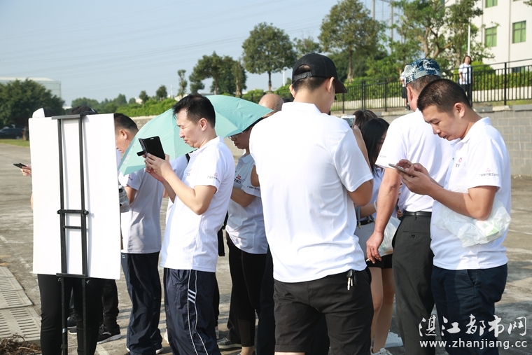 广发银行湛江分行的运动员用手机扫描趣味运动会二维码进行签到。