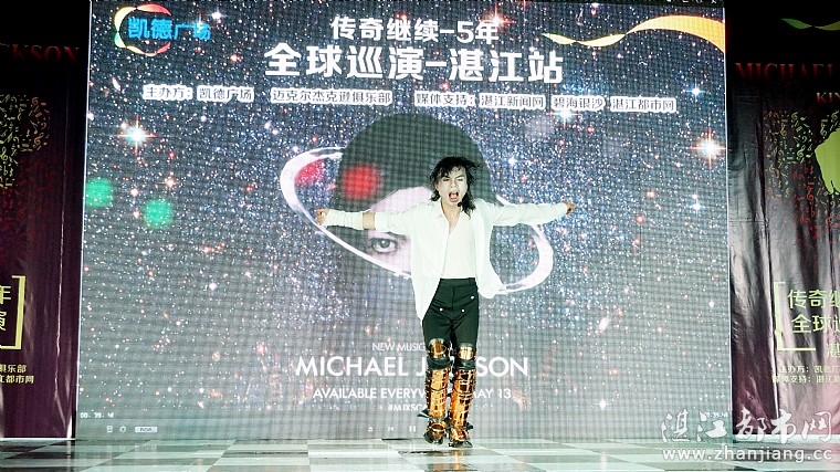 - [2014-10-02]湛江都市网网友观看向迈克尔·杰克逊致敬表演 [图]湛江都市网讯 (图/文:子珊妈)日前,湛江都市网一些活跃网友们参加了由凯德广场主办的《传奇继续-5年 全球巡演-湛江站》向迈克尔·杰克逊(michael joseph jackson)致敬活动。 迈克尔·约瑟夫·杰克逊(michael joseph jackson,1958年8月29日-2009年6月25日),是继猫王之后,西方流行乐坛最具影响力的音乐家,其成就已超越猫王。他是出色的音乐全才,作词,作曲,场景制作,编曲,演唱,舞蹈,乐器演奏都有着卓越的成就。他融合了黑人节奏蓝调与白人摇滚的独特的mj乐风,时而高亢愤疾、时而柔美灵动的嗓音,空前绝后的高水准音乐录影,规模宏大的演唱会无不在世界各地引起极大轰动,他在全球范围内拥有亿万歌迷。 他拥有世界销量第一的专辑《thriller》,销量达1.37亿(吉尼斯世界纪录认证数据)。他的唱片总销量数以亿计,据2006年底统计,其正版专辑全球销量已超过7.5亿,被载入“吉尼斯世界记录大全”。他是音乐史上第一位在美国以外卖出上亿张唱片的艺术家。他魔幻般的舞步更是让无数的明星效仿。 他一个人支持了世界上39个慈善救助基金会,保持着2006年的吉尼斯世界个人慈善纪录,是全世界以个人名义捐助慈善事业最多的人。他患有白癜风皮肤病,皮肤呈白色。但是很多人将杰克逊的皮肤颜色说成漂白造成的。 有人说迈克尔·杰克逊是一个神奇的怪物,浑身上下充满了一股神秘的力量,在音乐响起时他的节奏能带动全世界的脉搏。至今全世界仍有上亿歌迷。 虽然我们再也看不到他本人的风采,但他所有的音乐至今仍影响着几代人。就如当晚两位mj模仿者:刘辉贤和黄安。其中黄安就是在他小学五年级的时候,有一次看了mj的mv,开始喜欢他的音乐以及舞蹈。后来一直用心学习与研究,模仿得活灵活现。下面,我们就通过当晚的演出照片,一起来怀念这位已逝去的天王巨星,天之骄子。