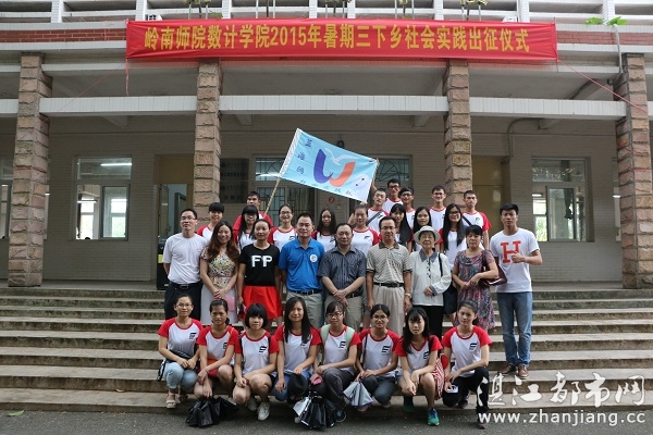 阅读(2164) 回复(1) 查看全文>> - [2015-07-10]岭南师范学院数计学院举行2015年暑期“三下乡”社会实践出征仪式 [图](撰文/肖锦丽 莫宗赵 摄影/罗梭梦)7月10日上午,岭南师范学院数计学院在古榕广场举行2015年暑期“三下乡”社会实践出征仪式。出席出征仪式的领导和嘉宾有数计学院院长李晓培教授、李健彬书记、唐洪浪副书记以及各队伍指导老师。出征仪式由数计学院辅导员全光华老师主持。 首先,全光华老师发言。他先是介绍了出席出征仪式的领导和嘉宾,然后强调“三下乡”对于大学生的意义。他还鼓励大学生要积极参加有意义的社会实践,多做对社会有意义的事,回报社会,提高自身综合素质和能力。