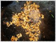 放木耳和黄蘑翻炒,调入酱油姜末再翻炒一会。