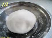 把凉糖水倒入糯米粉中不要一次加足、以防面过软。