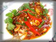 - [2012-01-29]豆瓣全鱼 [图]鲜鱼 1条豆瓣 1大匙生姜 1块葱 3棵大蒜 5瓣香菜 1棵花椒粉 1小匙生粉 适量小朝天椒 2棵白糖 2小匙鸡精 二分一小匙食用油 50克醋 1茶匙料酒 3小匙酱油 2大匙 1