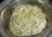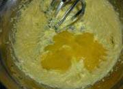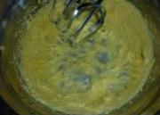 分三次加入鸡蛋液,搅拌均匀。每一次都要搅拌到鸡蛋和黄油完全混合均匀再加入下一次。