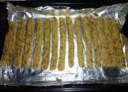 把切好的小条排入烤盘,即可放入预热到170度的烤箱烤焙。中上层烤15分钟左右。