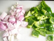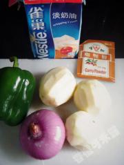 - [2013-02-28]金子是如何炼成的?--咖喱土豆丁 [图]土豆 洋葱 灯椒 淡奶油 咖喱粉 盐 玉米油 1