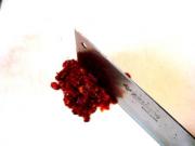 1、豆瓣酱一定要切碎才好使。切茄子时假如手没准,可用后刀抬起刀尖触砧的方法,始终使切茄子的刀锋离砧板有1.5公分的距离,便不至于切透切断。
