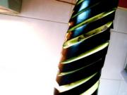 切好后提起茄子不散,呈蓑衣状就ok,注意,切时要按住茄子不要让它滚动,别使劲切断了哈,呵呵!