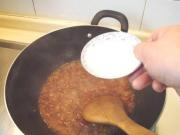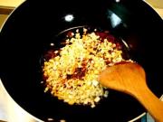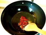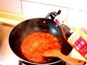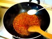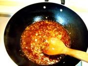 在蒸茄子期间可提前炒制鱼香汁,先煸香豆瓣辣酱。