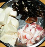 五花肉处理干净切片,冻豆腐切块,木耳洗净。