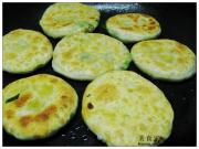 煎锅倒入少许菜油,油热放入做好的饼,中火略煎,翻下面,煎上一小会定型了,倒入小碗半碗的水,盖上锅盖焖一会。