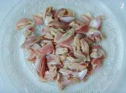 所有材料切丁,肉肥瘦分开,瘦肉丁加葱姜末拌好。