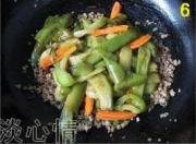 汤汁快要收尽时放入青椒条炒均。