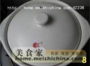将翻炒均匀的茄子和肉馅倒入瓷煲中,加入事先调好的酱汁,再加入适量高汤或者清水,大火烧开,转小火炖15至20分钟。