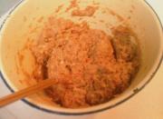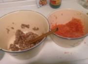 准备工作基本停当,这是肉馅、胡萝卜丝、和搅好的鸡肉泥。