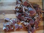 锅内加水200毫升放少许盐(汤有味即可),加姜片、大葱头、胡椒粉烧开,将洗净的鸡胗放入锅中煮15~20分钟起锅,放凉后切片装盘。